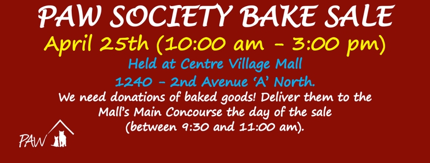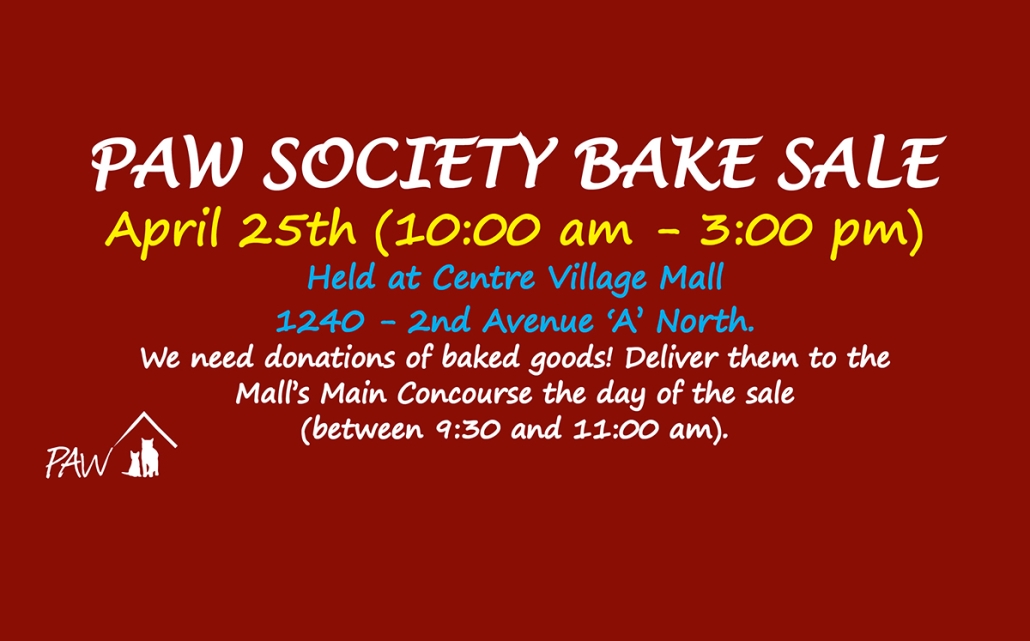 Drop off donated baked goods at Centre Village Mall (9:30 a.m. to 11:00 a.m., the day of the sale)