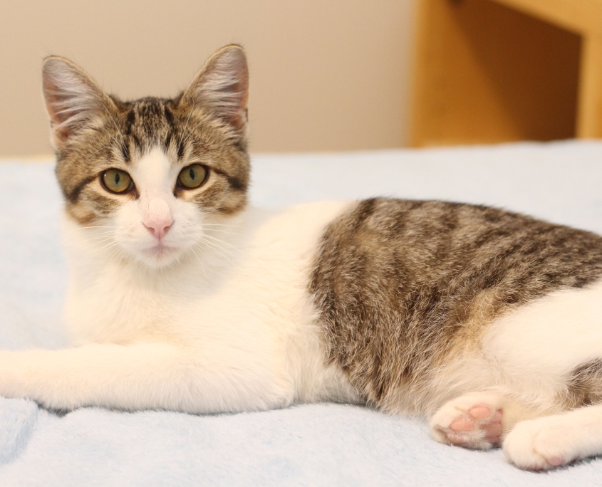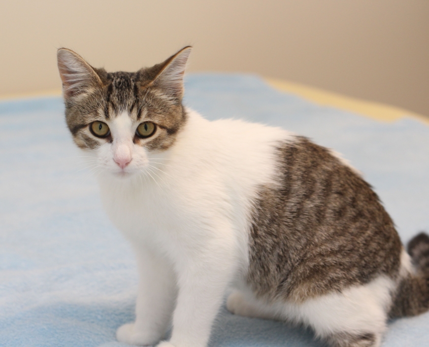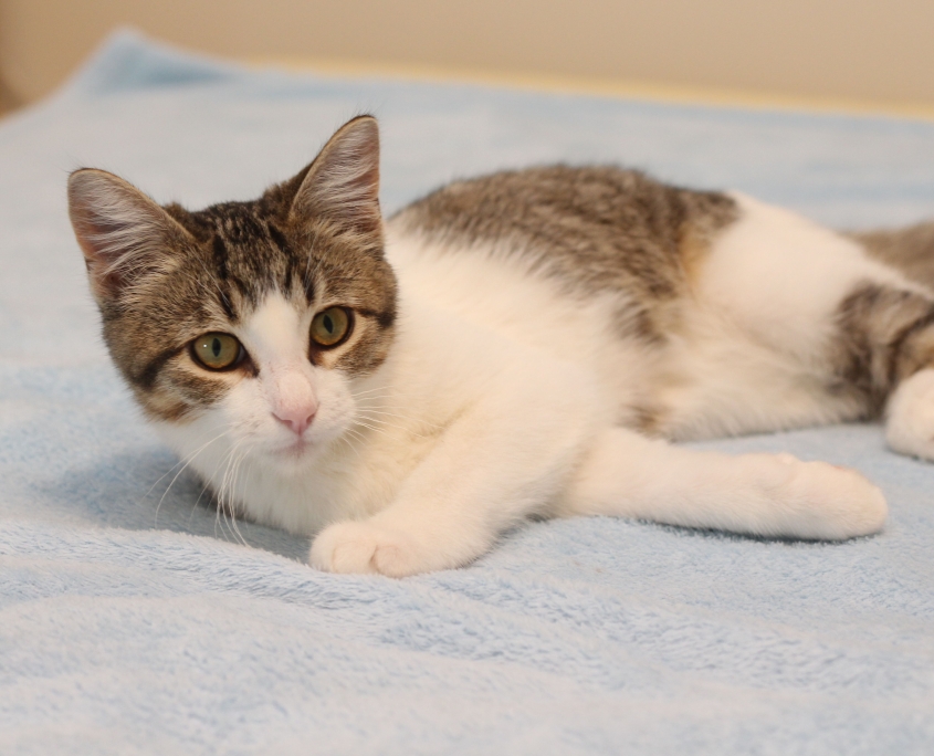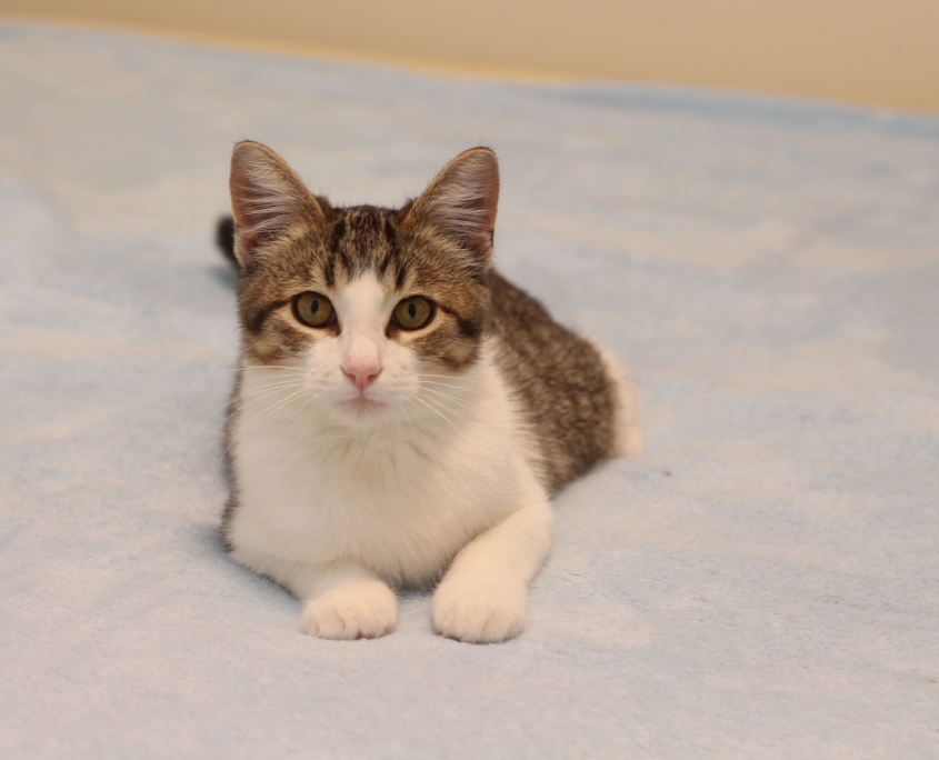 Who would abandon this kitten? Born in June 2025, this little guy is friendly, gentle and cuddly. Even at the veterinary clinic for his initial health check and vaccines, he was at ease and co-operative. He was happy to be held and petted by the clinic staff and purred with the attention. But he also wanted to explore; he’s not unnerved by new situations, it seems. He is in very good shape, has been snap-tested for FIV and FeLV (both negative), vaccinated and de-wormed. From his foster mom, “Felix is one of the most loving little kittens I have ever fostered. He has to know where his person is at all times! He plays, then will find you, curl up on you or beside you or sit on your lap when you’re at the computer.” Felix is a typically happy, chummy kitten. Who would abandon him? We don’t know. But we’re ready to find out who will adopt him!