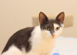 Talk about a little doll! She has everyone in her foster home wrapped around her little paws. “She’s so sweet!” She is gentle and cooperative at her veterinary appointments and loves attention from anyone. For the first few weeks, most of Sunny’s time was spent recuperating with rest and plenty to eat; then she rediscovered the fun of running free, racing up and down the cat furniture, chasing balls and springs and trying to entice the adult cats in her foster home to play. So far, they all either like or tolerate her but it’s only Evelyn who puts in a little more effort. Sunny makes sure she is in foster mom’s bedroom at bedtime but usually wants out of the room towards morning. She thinks she could be missing something and it’s not long before she can be heard thumping up and down the hallway – well rested and ready for round one. Her medium-length fur is fine-textured and soft, her tail has pretty brown tones.