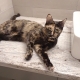 Rosie can be cautious when presented with a new situation. Having her ‘sister’, Tali, with her for the transition to her foster home definitely helped and, within a few short days, she was eating well and coming out for attention. Rosie is in robust shape, enjoys being brushed and gives the scratching post a vigorous work-out. She plays in and around the tunnel and likes to climb to a high spot where she prefers her bed to be. Rosie has a funny, squeaky purr, and is very comfortable and relaxed when on a human lap.
