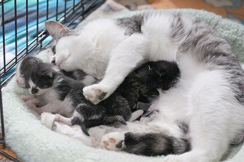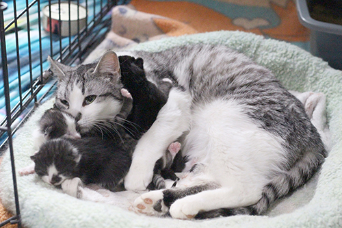 Tilly and her kittens – three boys and a girl – will be available for adoption in twelve weeks’ time. Until then, watch for this profile to be updated, as we learn more about them.